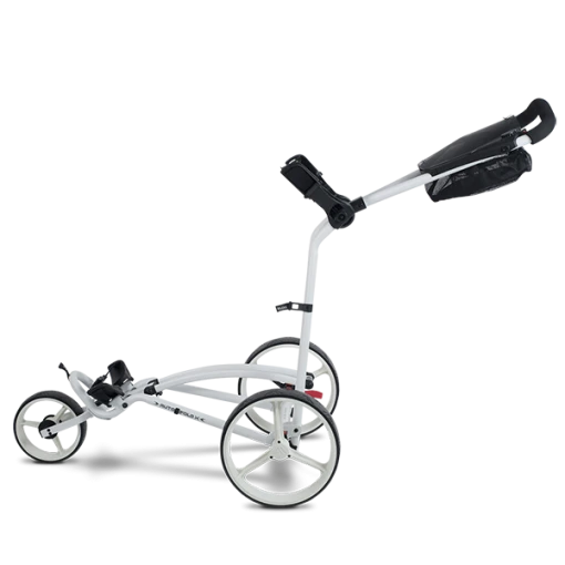 There is no comparable 3-wheel trolley, which you can handle so easily and fast. With only one hand movement, you are able to fold and fix the trolley into a compact package – folds automatically. This trolley offers you a great feature – the front tyre will automatically collapse, when you fold the trolley. The Big Max Autofold X Trolley with its stylish and compact design is perfect for any golf course.