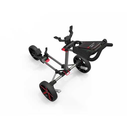 The all-new DLX-Lite FF Push Cart has been cleverly designed with optimum storage in mind. The simple folding and unfolding system allow it to be folded down flat to give slimline compact storage. The innovative flat fold design provides unique options for storage and transportation of your golfing gear.