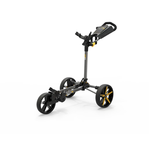 Constructed from a lightweight aluminium frame and designed to glide over any terrain thanks to the large sports wheels. The ergonomic handle adjusts to suit your height and the PowaKaddy key lock system stops your golf bag from twisting.